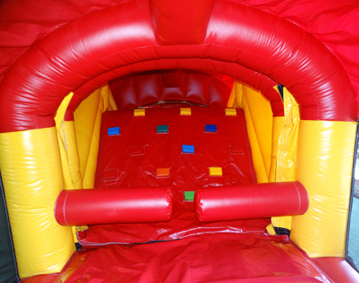 This obstacle includes pop-ups, climbing wall with slides, and exits out of the back of the Iguana.